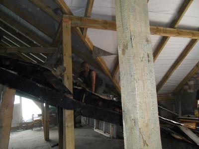 Pracownik GOPS - p. Marek Adamiak i Kierownik GOPS - p. Iwona Radzimirska podczas pracy na strychu